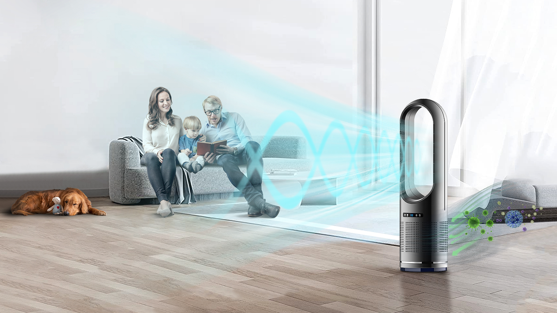 Una poderosa corriente de aire purificado puede calentarlo o refrescarlo cuando lo desee. limpia el aire durante todo el año y mantiene una temperatura interior razonable.